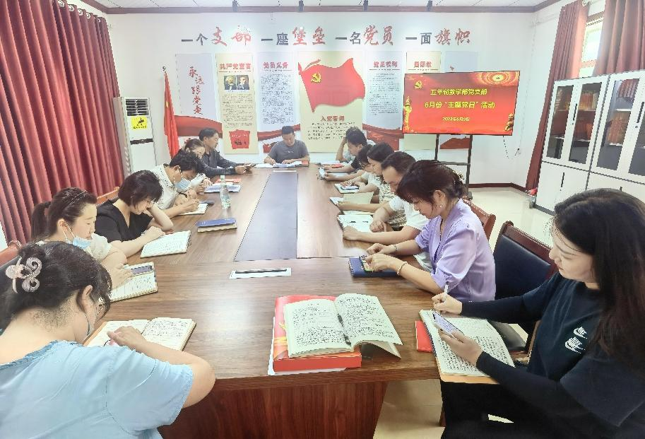 6月9日下午15:30分,五年制教学部党支部在党建室组织开展6月份主题党日学习活动。本次活动由党支部书记李会凯主持,全体党员同志参加。按照上级党委要求,组织全体党员深入学习贯彻习近平总书记近期重要讲话重要指示和发表重要文章精神,组织学习《习近平著作选读》《习近平新时代中国特色社会主义思想专题摘编》等主题教育重点书目,全面学习领会习近平新时代中国特色社会主义思想的科学体系、核心要义、实践要求,自觉用习近平新时代中国特色社会主义思想武装头脑、指导实践、推动工作。