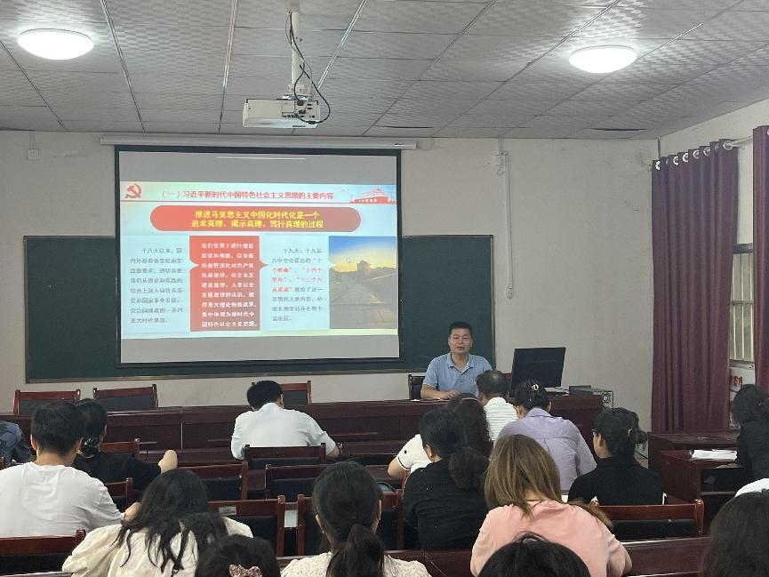 2023年6月16日,五年制教学部党支部书记李会凯为全体教职工讲专题党课