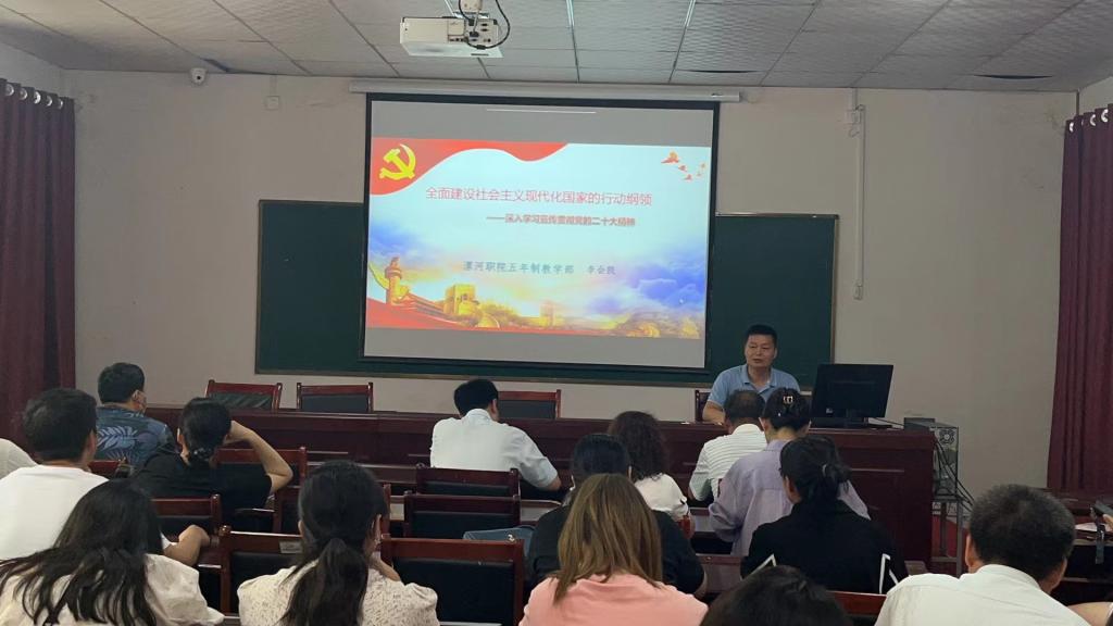 2023年6月9日,五年制教学部党支部书记李会凯组织全体党员教师开展学习贯彻党的二十大精神专题党课