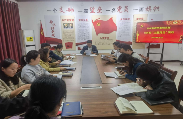 11月3日下午15:00分,五年制教学部党支部在党建室组织开展11月份主题党日学习活动。本次活动由党支部书记李会凯主持,全体党员同志参加。按照上级党委要求,组织全体党员深入学习贯彻习近平总书记近期重要讲话、重要指示批示和发表重要文章精神,学习习近平总书记关于职业教育的重要指示批示精神和重要论述,掌握基本内容、基本观点、基本要求。组织学习《习近平新时代中国特色社会主义思想专题摘编》等主题教育重点书目,自觉用习近平新时代中国特色社会主义思想武装头脑、指导实践、推动工作。