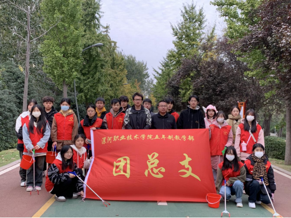 11月10日下午,共青团源汇区委兼职副书记徐晓、共青团源汇区委科员郭一鸣和五年制教学部团总支书记李珑带领五年制教学部学生志愿者共30人,在沙澧河岸开展“爱护河堤 你我同行”志愿服务活动,清理河道两旁垃圾,改善水环境,保护好母亲河,以实际行动助力生态文明建设。
