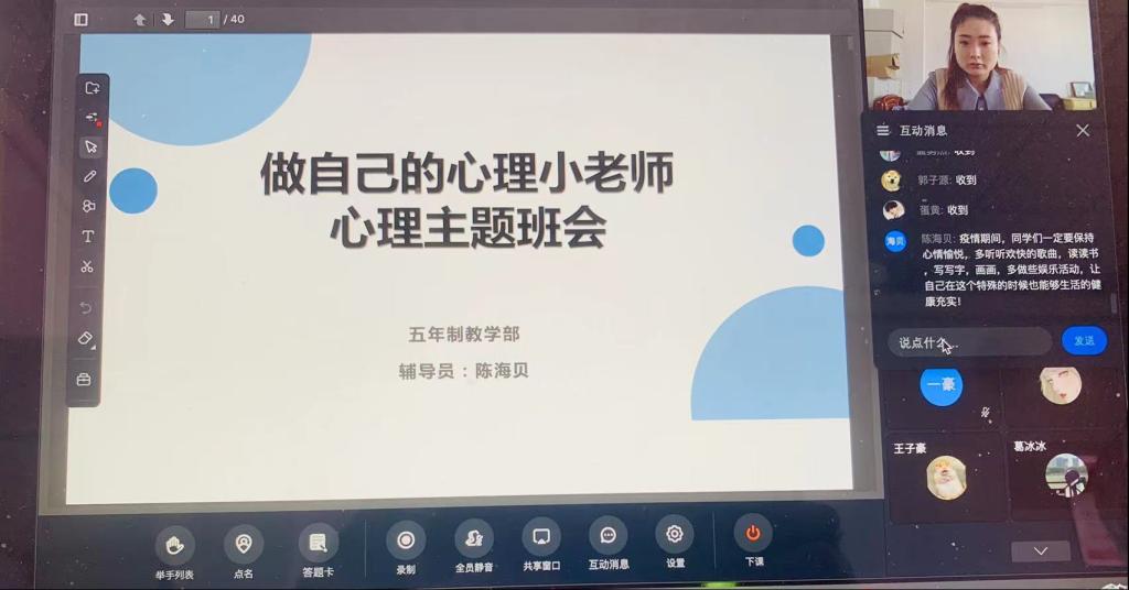 为了提升学生心理素质,缓解同学们在疫情期间的心理压力,促进学生的身心健康发展。2022年4月1日至4月4日,五年制教学部以班级为单位,通过微信群、QQ群、钉钉群等平台持续开展了4次心理健康主题班会,并通过网上承诺、接龙签名等多样的形式,开展了“防疫疫情,我是漯职学子我承诺”“同心战役,坚定同行”“做自己的心理小老师”等活动,五年制教学部2985名学生都积极参与活动之中。