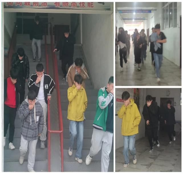 学生消防疏散演练活动,让师生通过实践演练直观地了解有关的消防知识,提高自身安全意识。活动中,学生一听到哨响,便在教师的引导下用手或者湿毛巾捂住口鼻,向校内开阔地带有序疏散。