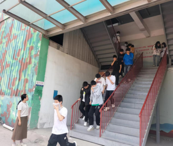 随着哨声的响起,学生们在教师的引导下迅速行动。他们用手或湿毛巾捂住口鼻,沿着指定的路线,从寝室、教室门口或消防疏散通道有序撤离。在这个过程中,学生们表现出了高度的纪律性和自我保护意识,他们听从指挥、紧张有序、及时有效地完成了撤离任务。