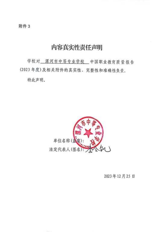 2023年度,漯河市中等专业学校深入学习贯彻党的二十大精神和习近平新时代中国特色社会主义思想,贯彻新时代党的教育方针,紧紧围绕国家大力发展职业教育的政策,强内涵,树形象,创特色,落实立德树人根本任务,加强教风、学风建设,不断提高人才培养质量,取得了良好的教育教学成果,促进了学校高质量发展。