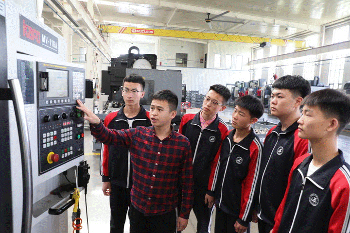2021年5月8日,河间市职业教育中心教师在河间市一家企业为学生讲解机床实操。新华社记者 骆学峰 摄